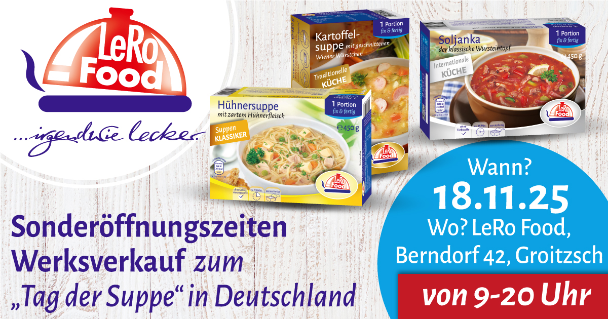 Zum „Tag der Suppe“ in Deutschland öffnen wir unseren Werksverkauf mit Sonderöffnungszeiten!